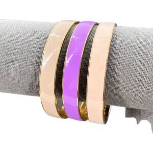 J Crew Enamel Bangle Bracelet Lot Pastel Set of 3 Pink Beige Lavender