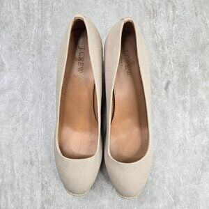 J. Crew Espadrille Wedge Pumps Tan Minimalist Platform Preppyt Slip On Shoes 9.5