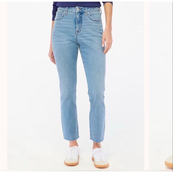 J. Crew Essential Straight Cropped Jeans Womens 35 Light Blue High Rise Raw Hem