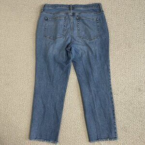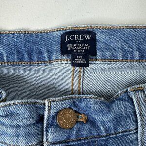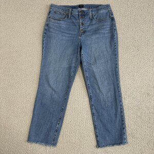 J Crew Essential Straight Jean Size 32 Blue Raw Hem Button Fly Stretch