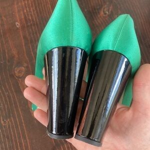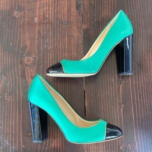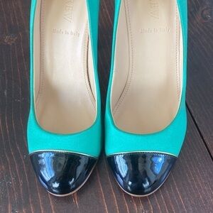 J. Crew Etta Jade Emerald Cap Toe Heel Satin Pumps