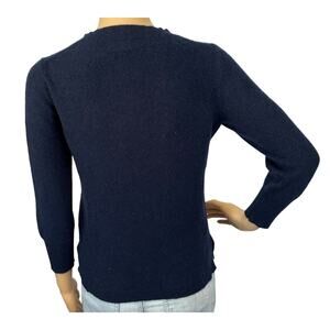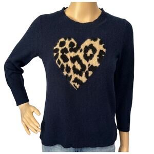 J. Crew Everyday Pure Cashmere Crewneck Sweater with Leopard Heart Blue Size S