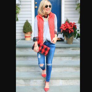 Puffer vest made for both utility and fashion. Slimming while warm in a bright coral salmon pink color to make you stand out in the crowd. Add this layer over a white tee or neck sweater