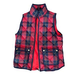 J. Crew Excursion Down Vest Tartan Buffalo Plaid Red Navy Pockets Medium