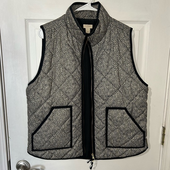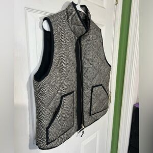 J. Crew Excursion puffer vest herringbone pattern Quilted Size XL Black/Cream