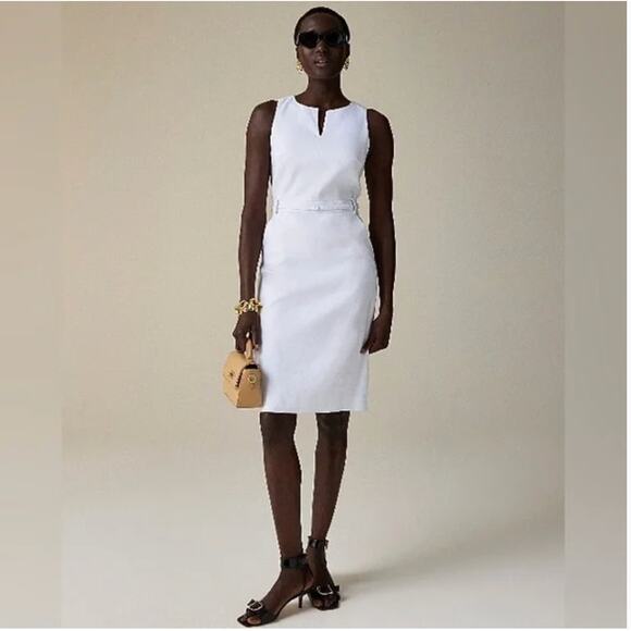 NWT J Crew J Crew Executive Stretch Linen Dress in white. Size 14.