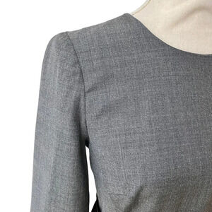 J. Crew Exeter Wool Dress Gray Black Velvet Bow Waist Fitted Size 2