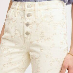 J Crew Eyelet Billie Demi Boot Crop Jeans 31 Floral High Rise Womens Cream AL874