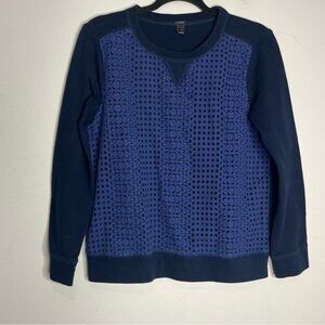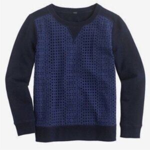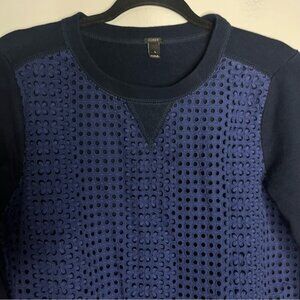 J. Crew Eyelet Sweatshirt Navy Cotton Pullover Blue, Size L