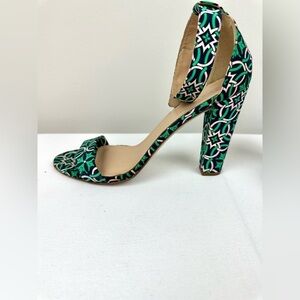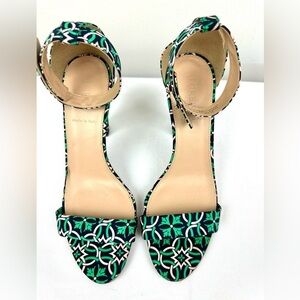 J Crew Fabric Ankle Strap Block Heel Sandals Made in Italy Size 9.5