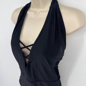 J Crew Factory 1 one Piece V Neck Halter Swimsuit Size medium Lined bathing suit