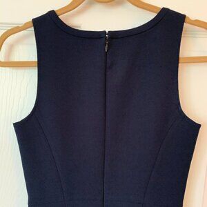 Like NEW condition. Perfect spring/summer/fall dress for work. I wore this for business meetings, and while working two gala events. The dress hits right at the knee and is a true navy color.