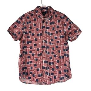 J Crew Factory American Flag Printed Shirt Large Red White Blue AO575