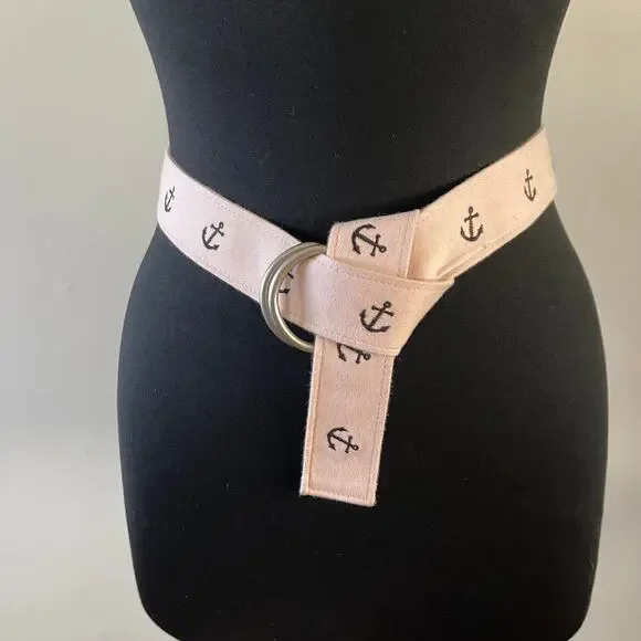 J Crew Factory Anchor D Ring Belt S M Pink Nautical Classic Preppy