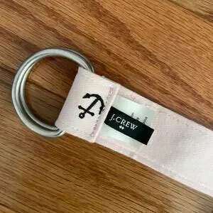 Tags: J Crew Factory belt, anchor D ring belt, pink belt womens, S M size belt, nautical belt, preppy accessory, cotton belt, adjustable belt, J Crew pink, anchor motif, flawed belt, spot on belt, belt for repairs, preppy style belt, summer accessory, coastal style, classic belt, J Crew accessory