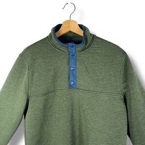 J Crew Factory Authentic Fleece Quilted Knit Pullover, Olive Green, Size Small