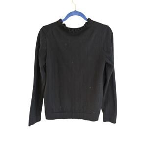 J. Crew Factory Black Cotton Ruffleneck Sweater - Medium