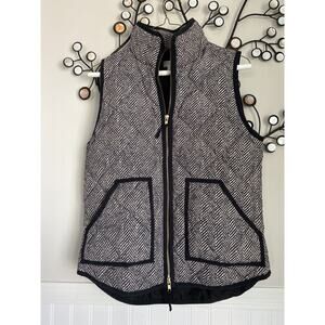 J. Crew Factory Black Herringbone Printed Quilted Down Puffer Vest jacket XS