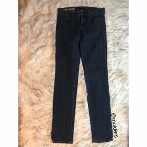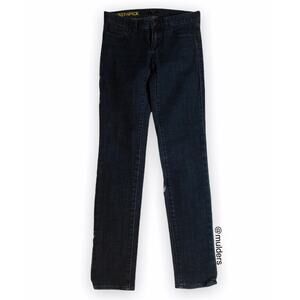 • solid black dark wash stretch "Toothpick" skinny jeans with low rise waist