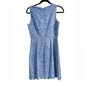 J. Crew Factory Blue Floral Scalloped Sleeveless Mini Dress Size Small. Zip in back. Floral detailing with scalloped edges. Dress is lined. In good condition.