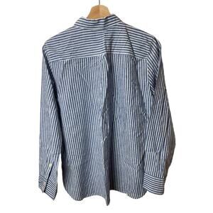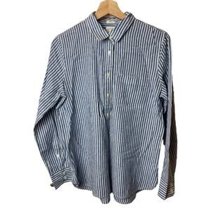 J. Crew Factory Blue White Stripe Button Up Shirt Blouse Women's M