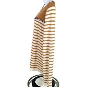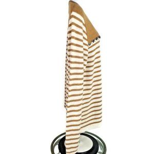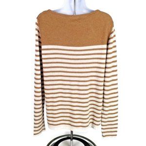 J Crew Factory Breton Tan Cream Stripe Long Sleeve Embellished Neckline Sweater Womens Size XL