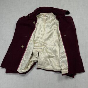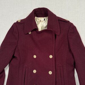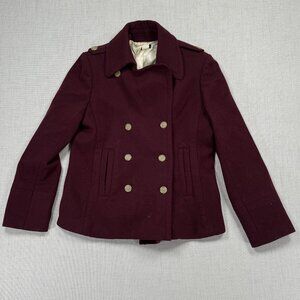 J. Crew Factory Burgundy Wool Double Breasted Coat Button Front Size L Large