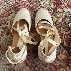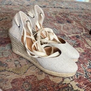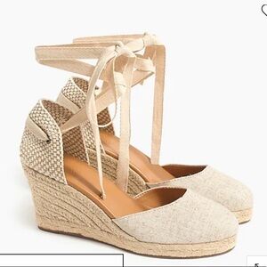 J Crew Factory Canvas ankle-wrap espadrille wedges AW593