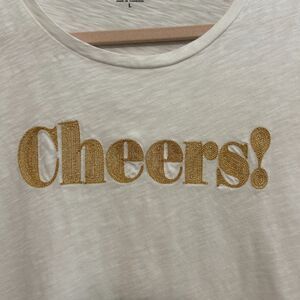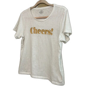J. Crew Factory Collector Tee Womens Large White Embroidered Gold Cheers Holiday