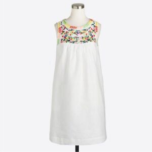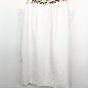 J. Crew Factory Colorful Embroidered White Linen Cotton Blend Sleeveless Shift Dress