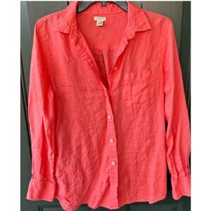 J. Crew Factory Coral Pink Linen Button Shirt S Coastal Preppy Casual Minimalist