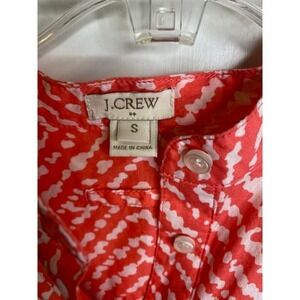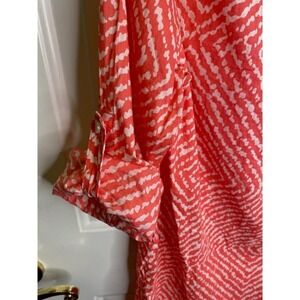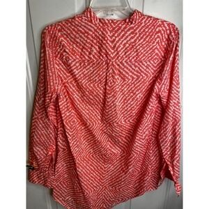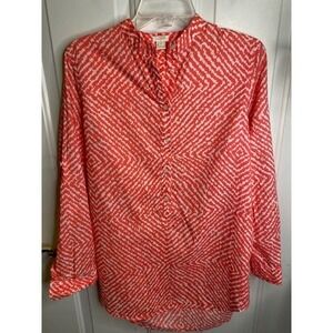 J. Crew Factory Coral White Print Cotton 1/2 Button Blouse Small Roll Tab Sleeve