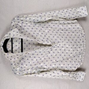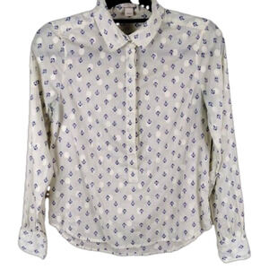 J. Crew Factory Cream Nautical Theme Long Sleeve 3/4 Button Up High Low Top