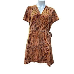 J. Crew Factory Drapey Twill Wrap Mini Dress Short Sleeve Animal Print S…