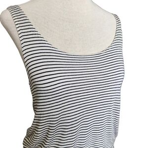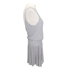 J Crew Factory blue and white striped sleeveless, mini dress with drawstring waist.