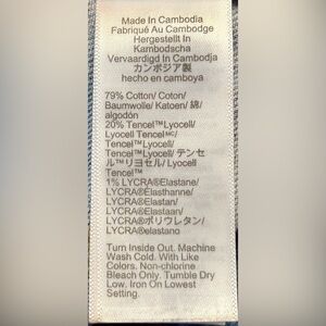 > FABRIC: 79% Cotton, 20% TENCELT™ lyocell, and 1% Lycra®. Machine washable.