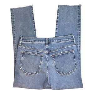 J. Crew Factory Essential Straight Raw Hem Medium Blue Denim Jeans Womens Size 28