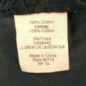 Materials: 100% cotton; Lining: 100% cotton