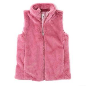 J. Crew Factory Faux Fur Vest in Guava Berry.
