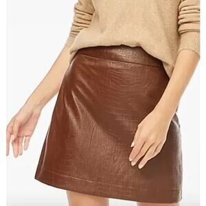 J. Crew Factory Faux Leather Croc Embossed Skirt Mini Lined Brown Size 10