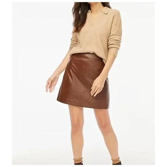 J. Crew Factory Faux Leather Croc Embossed Skirt Mini Lined Brown Size 10