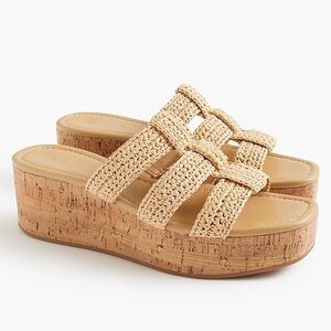 J. Crew Factory Fisherman Flat-form Wedges Sandal in Toasted Woven Tan Size 7