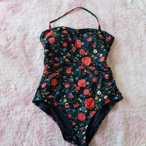J. Crew Factory Floral Halter Strapless One Piece Swimsuit Size Meduim