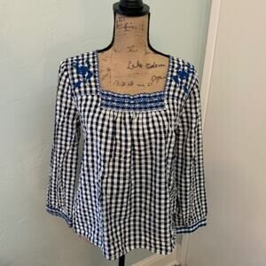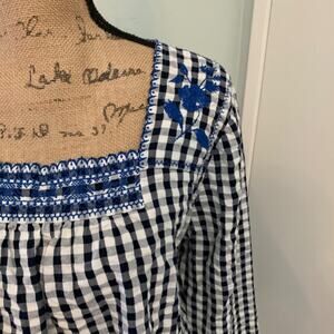 J. Crew Factory Gingham Embroidered Square Neck Blouse cotton peasant boho M