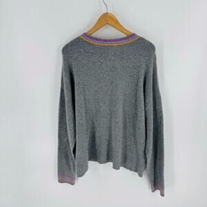 J. Crew Factory Gray Rainbow Crew Neck Collar Extra Soft Fuzzy Sweater Size XL