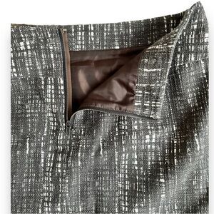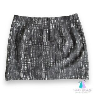 Grey and white tweed-look mini skirt. Fully lined, back zipper.