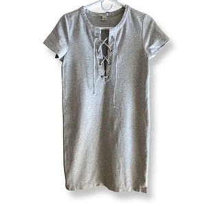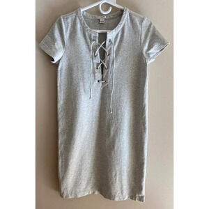 J. Crew Factory Grey Lace-Up Knit Lightweight Sweatshirt Dress Size XS