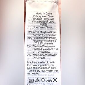 > FABRIC: 51% Acrylic, 35% Polyamide, 7% Elastane, and 7% Wool.
