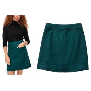J Crew Factory Hunter Green Felted Wool Blend Pencil Skirt. Beautiful rich green, softer wool blend pencil skirt. Mini style. Zipper closure. Lined. Measurements in pictures.