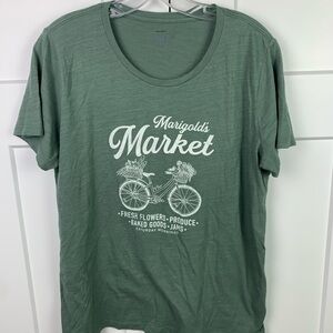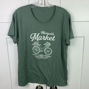 J Crew Factory LARGE Graphic Tee Marigold Flower Market Green